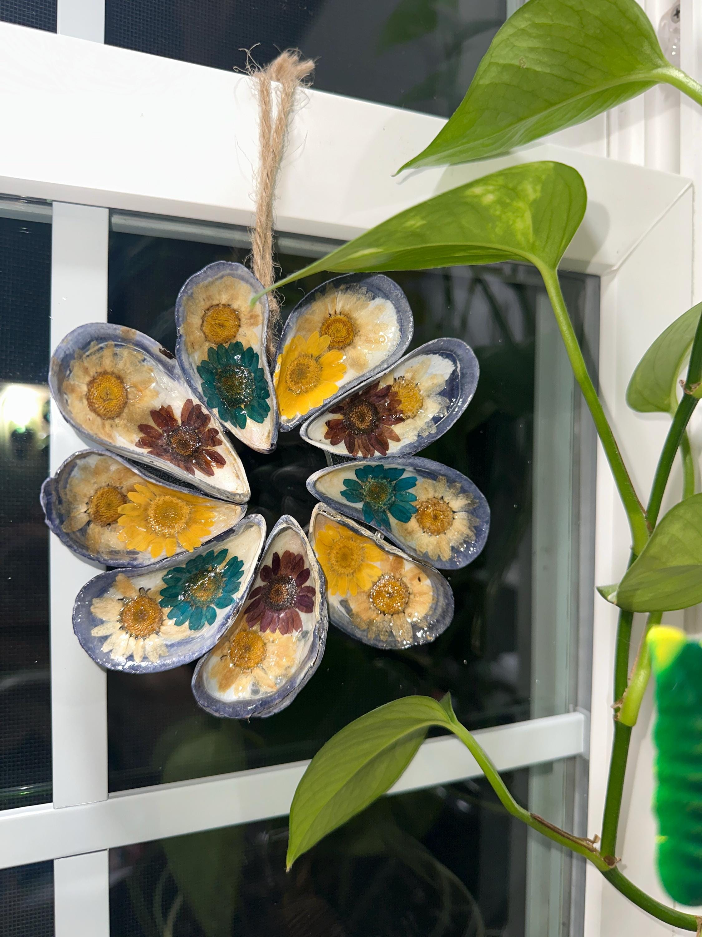 Wreaths measure between 4 1/2-5 inches in diameter and include mussel shells I collected from a local beach here in Friendship, Maine.